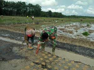 BARABAI-Dimasa pandemi covid-19, Babinsa jajaran Kodim 1002/Barabai terus berupaya melaksanakan pendampingan kepada para petani guna mewujudkan swasembada pangan.