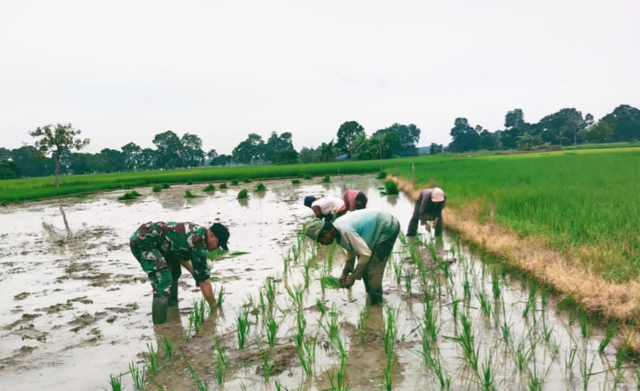 Seperti hari ini, Serda Yunus Suyanto membantu kelompok tani Suka Maju menanam padi, ini merupakan salah upaya untuk mendukung ketahanan pangan di tengah inflasi saat ini,”tambahnya