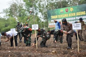 BARABAI-Komandan Kodim 1002/HST Letkol Kav Gagang Prawardhana.SIP.,M.Han menyalurkan bantuan berupa benih jagung kepada petani yang tergabung di sejumlah Gapoktan yang tersebar di 11 Kecamatan di HST. Penyerahan bibit sekaligus penanaman perdana dilakukan di lahan seluas satu hektar lebih di Desa Pajukungan, Kecamatan Barabai, Rabu (10/8) sore