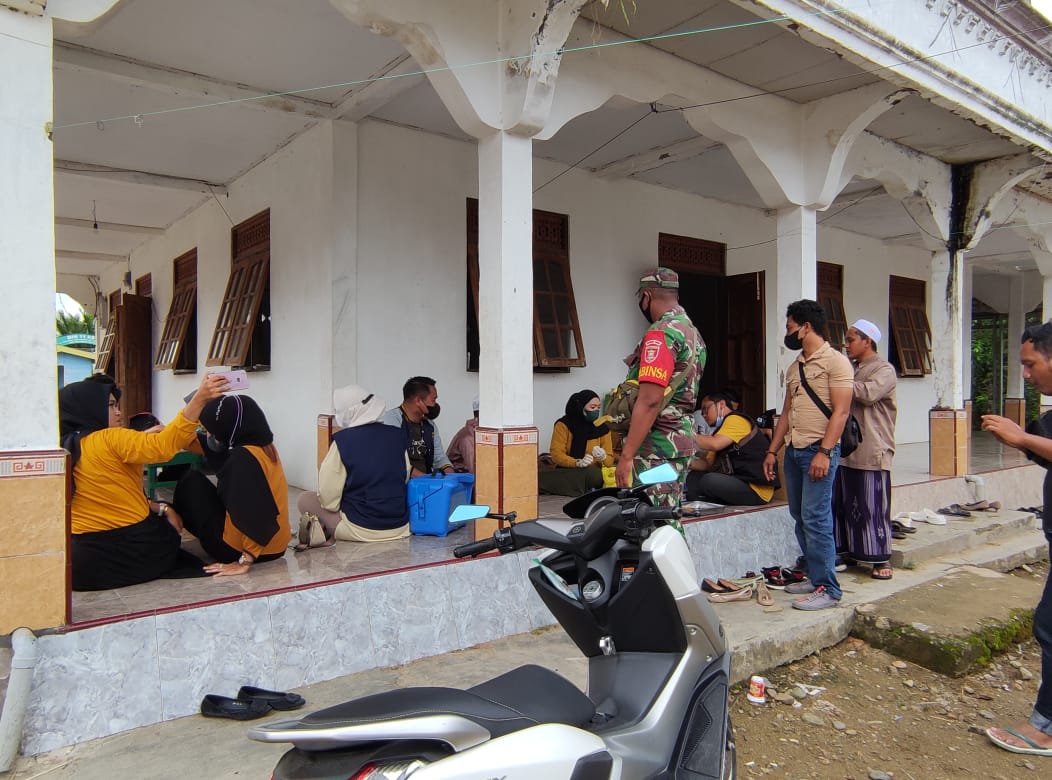 Disampaikan oleh Babinsa Koramil 1002-04/Labuan Amas Selatan Serma Haris Fadillah sebanyak 218 dosis vaksin hari disuntik oleh nakes Durian Gantang bertempat di dua titik yaitu Posyandu Teratai dan Masjid Taras Padang,”katanya