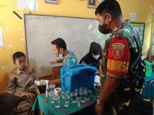 “Kegiatan Vaksinasi ini bertujuan untuk mencegah dan mengantisipasi penyebaran Virus Corona (Covid-19) khususnya kepada anak-anak,”tutur Serda Tajuddin.