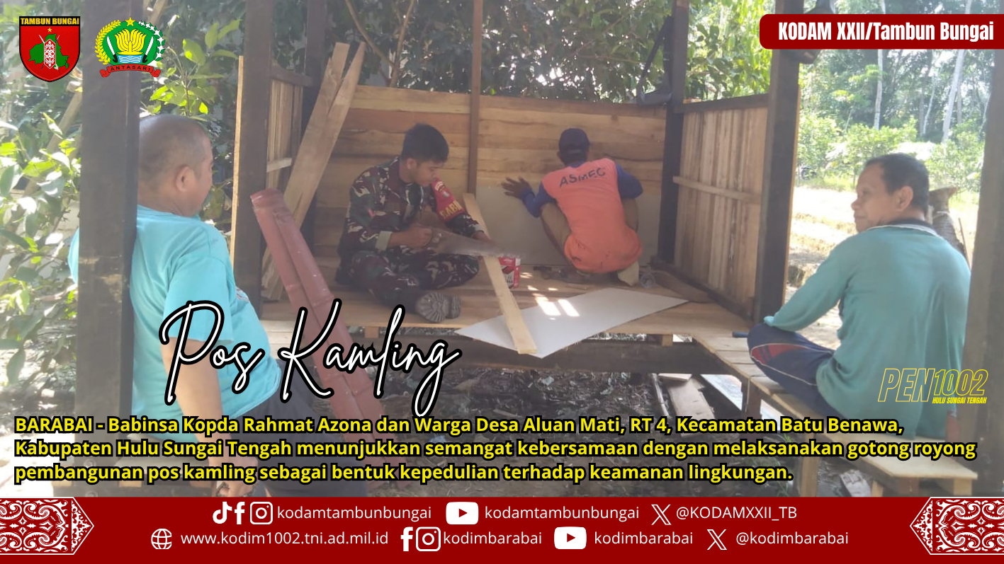 BARABAI – Warga Desa Aluan Mati, RT 4, Kecamatan Batu Benawa, Kabupaten Hulu Sungai Tengah menunjukkan semangat kebersamaan dengan melaksanakan gotong royong pembangunan pos kamling sebagai bentuk kepedulian terhadap keamanan lingkungan.