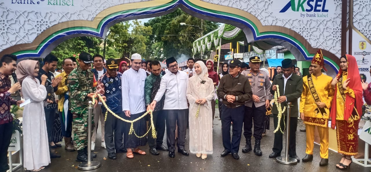 BARABAI- Bupati HST, H Aulia Oktafiandi didampingi Ketua Tim Penggerak PKK, Chery Bayuni Budjang Aulia Oktafiandi meresmikan Pasar Ramadhan, di Depan Gedung Murakata, ditandai dengan pemotongan untaian melati, Jumat (24/3) sore.