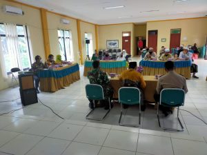BARABAI-Danaramil 1002-06/Barabai Kapten Inf Rudi Hartono menghadiri acara sosialisasi/patriloli Perbup HST nomor 34 Tahun 2020 bertempat di Aula kecamatan Barabai Jalan Bintara Kelurahan Timur Barabai.Kamis (15/10).
