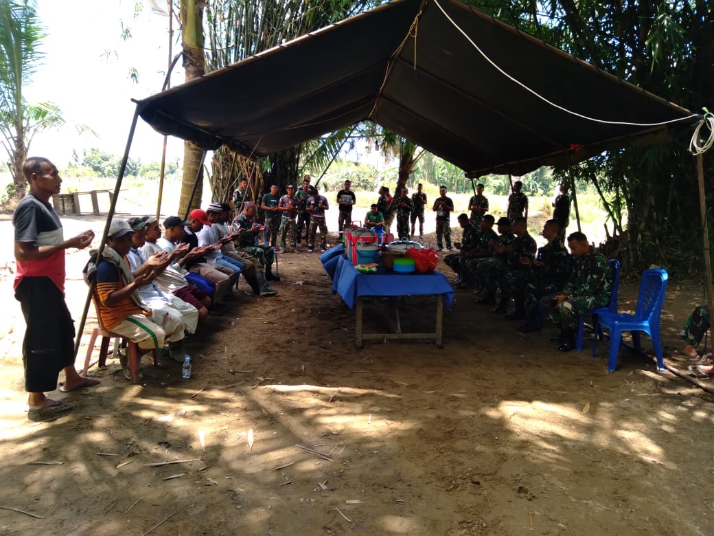 BARABAI-Satgas TNI Manunggal membangun Desa Ke-112 Kodim 1002/HST tahun 2021 beraktifitas seperti biasa melanjutkan pengerjaan semua sasarn baik fisik maupun non fisik di desa Rantau Keminting Kec. Labuan Amas Utara Kab. Hulu Sungai Tengah (HST).
