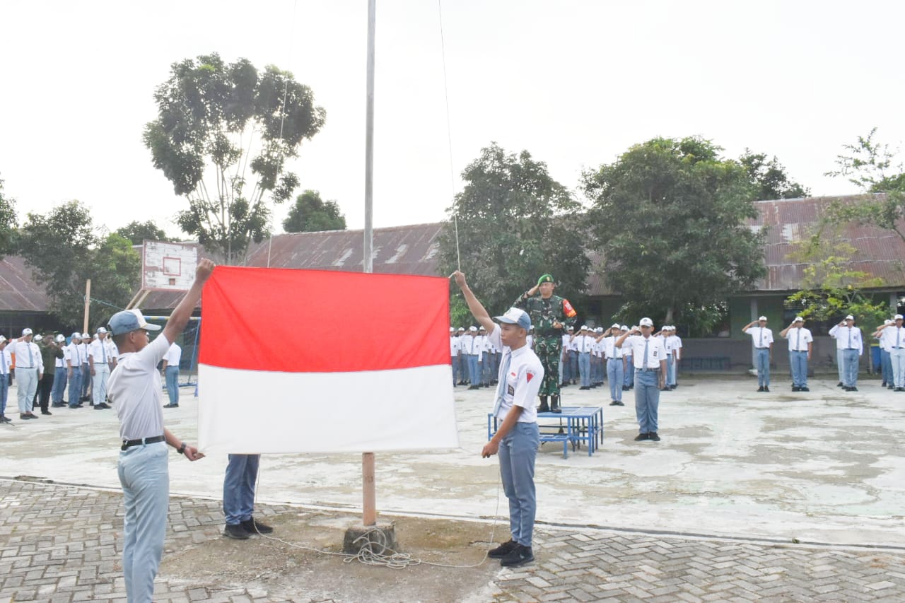 BARABAI-Komandan Kodim 1002/HST Letkol Kav Gagang Prawardhana,S.I.P.,M.Han menjadi Pembina Upacara Pengibaran Bendera Merah Putih di SMK MUDA Kreatif Barabai, desa Banua Jingah RT.006 RW.003 Kecamatan Barabai Kabupaten Hulu Sungai Tengah.Senin (16/01).