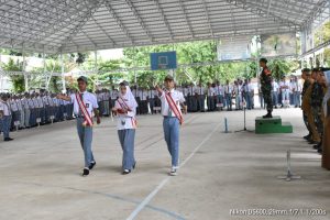 BARABAI-Komandan Kodim 1002/HST Letkol Kav Gagang Prawardhana,S.I.P.,M.Han menjadi Pembina Upacara Pengibaran Bendera Merah Putih SMAN 2 Barabai Kelurahan Pantai Hambawang Barat Kec. Labuhan Amas Selatan Kab. HST.Senin (30/01).