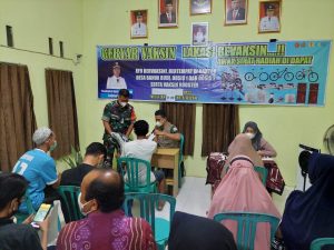 BARABAI-Kali kedua Tim Mobile yang diterjunkan Kodim 1002/HST menggelar serbuan vaksinasi di Kantor Desa Banua Budi Kecamatan Barabai Kabupaten Hulu Sungai Tengah (HST) Kalimantan Selatan.Kamis (28/4) malam