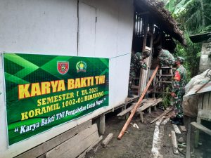 Dalam rangka perlaksanaan Karya Bakti TNI Satuan Komando Kewilayahan semester I tahun anggaran 2021, Kodim 1002/Barabai melalui koramil jajaran melaksanakan karya bakti TNI berupa rehab rumah tidak layak huni bagi warga masyarakat kurang mampu. Kamis (20/05).