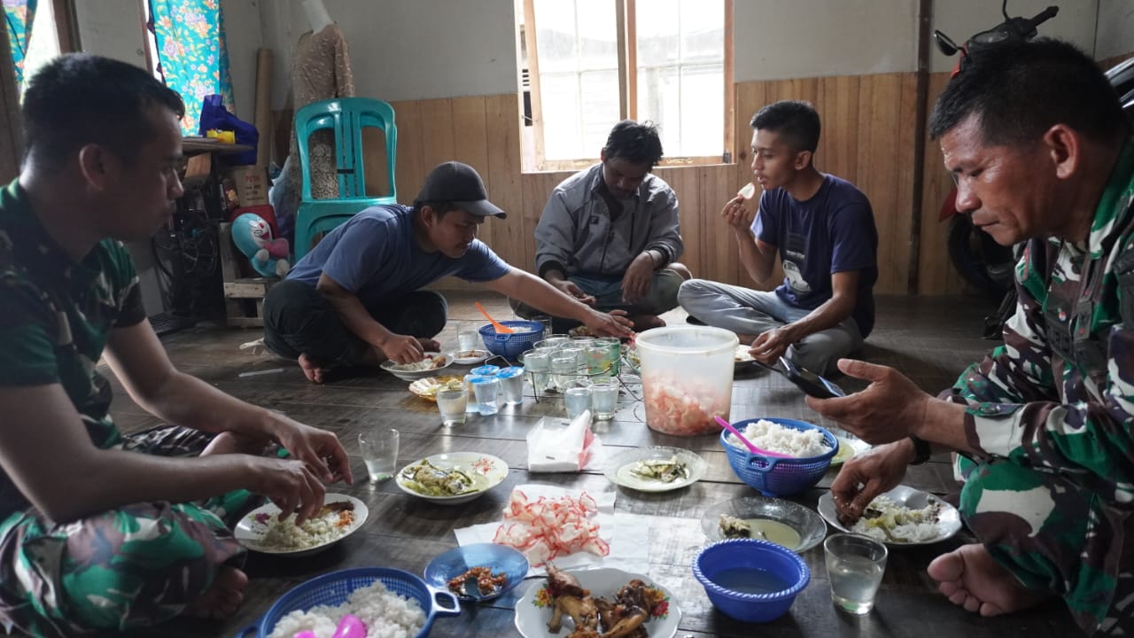 Setelah berjibaku dengan berbagai kegiatan pembangunan fisik di desa, waktu makan siang menjadi kesempatan bagi para anggota Satgas TMMD untuk beristirahat dan memulihkan tenaga. Lebih dari sekadar mengisi perut, momen ini juga menjadi ajang mempererat tali silaturahmi antar anggota Satgas dan dengan masyarakat setempat.