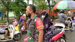 Rudi menuturkan, untuk menyukseskan serbuan vaksin Tim Mobile Kodim 1002/HST nanti sore Babinsa kami Serka Abdul Hamid berkeliling pasar mengajak warga masyarakat untuk vaksin.