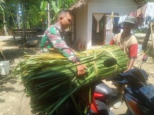 Seperti yang dilakukan oleh Serda Riski, salah satu anggota Satgas TMMD Ke-112 Kodim 1002/HST. Usai melaksanakan proses perbaikan mutu jalan TMMD, di tengah perjalanan menjumpai warga angkat daun rumbia untuk digunakan sebagai anyaman atap, Tanpa diminta, Serda Riski langsung membantu angkat rumbia tersebut. Senin, (11//10/2021) sore waktu setempat.