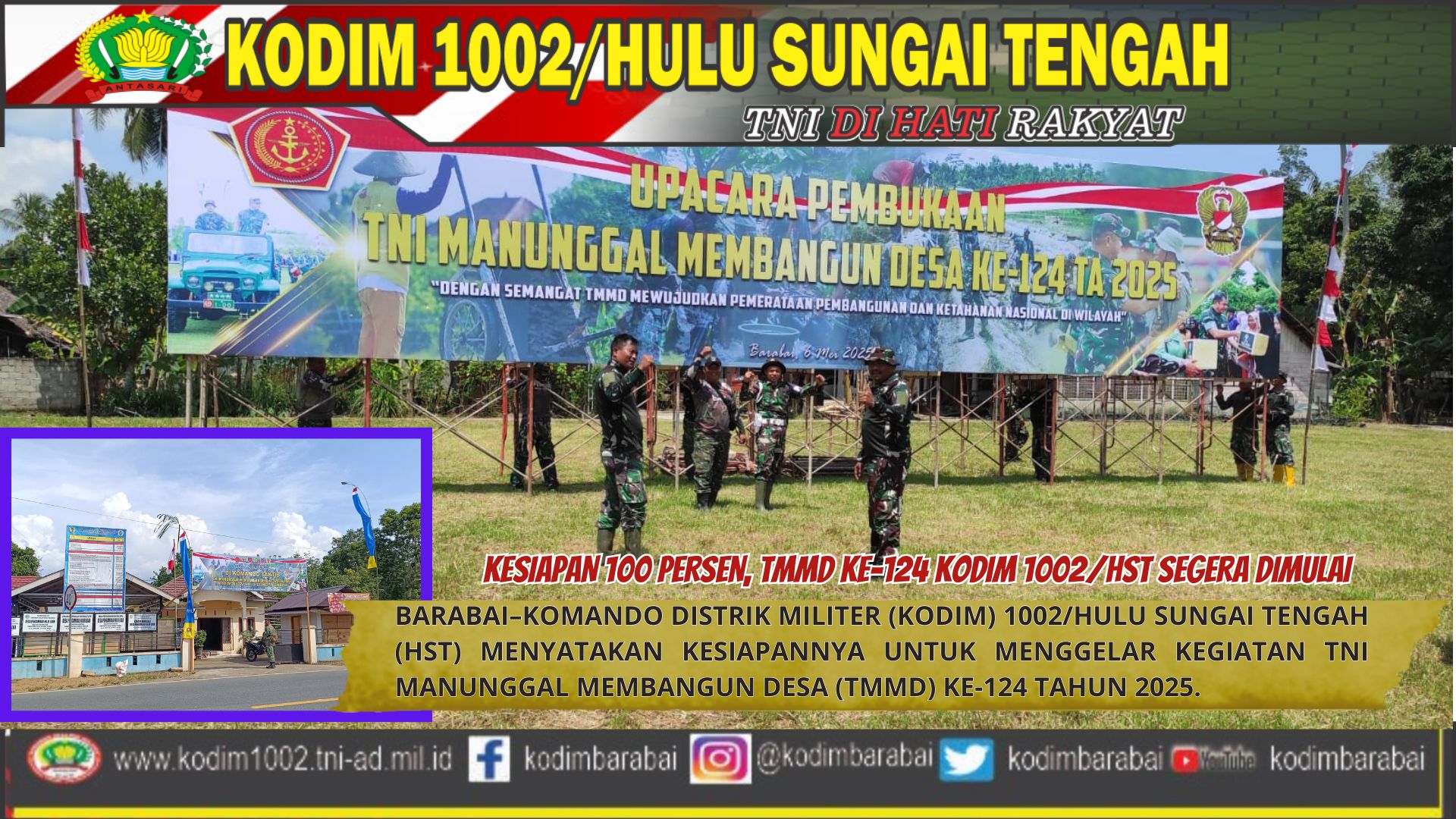BARABAI–Komando Distrik Militer (Kodim) 1002/Hulu Sungai Tengah (HST) menyatakan kesiapannya untuk menggelar kegiatan TNI Manunggal Membangun Desa (TMMD) ke-124 tahun 2025.
