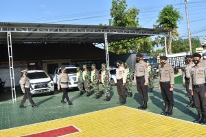 BARABAI-Anggota Kodim 1002/Barabai mengikuti gelar pasukan operasi kepolisian kewilayahan keselamatan intan 2021, bertempat di Mapolres Hulu Sungai Tengah, jalan ir.P.H.M.Noor Barabai.Senin (12/4)