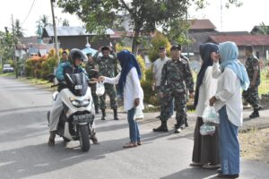 BARABAI-Kodim 1002/HST berbagi takjil buka puasa di Jalan Telaga Padawangan Kelurahan Barabai Timur Kecamatan Barabai Kabupaten Hulu Sungai Tengah, Selasa (18/04) sore
