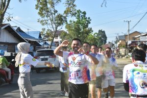 “Event yang pertama kalinya digelar di HST ini selain untuk menyambut HUT TNI ke-77, juga untuk meningkatkan kesadaran masyarakat pentingnya berolahraga untuk jaga kebugaran dan kesehatan tubuh,” ujar Dandim 1002/HST, Letkol Kav Gagang Prawardhana saat memberikan sambutan Color Run 5K.