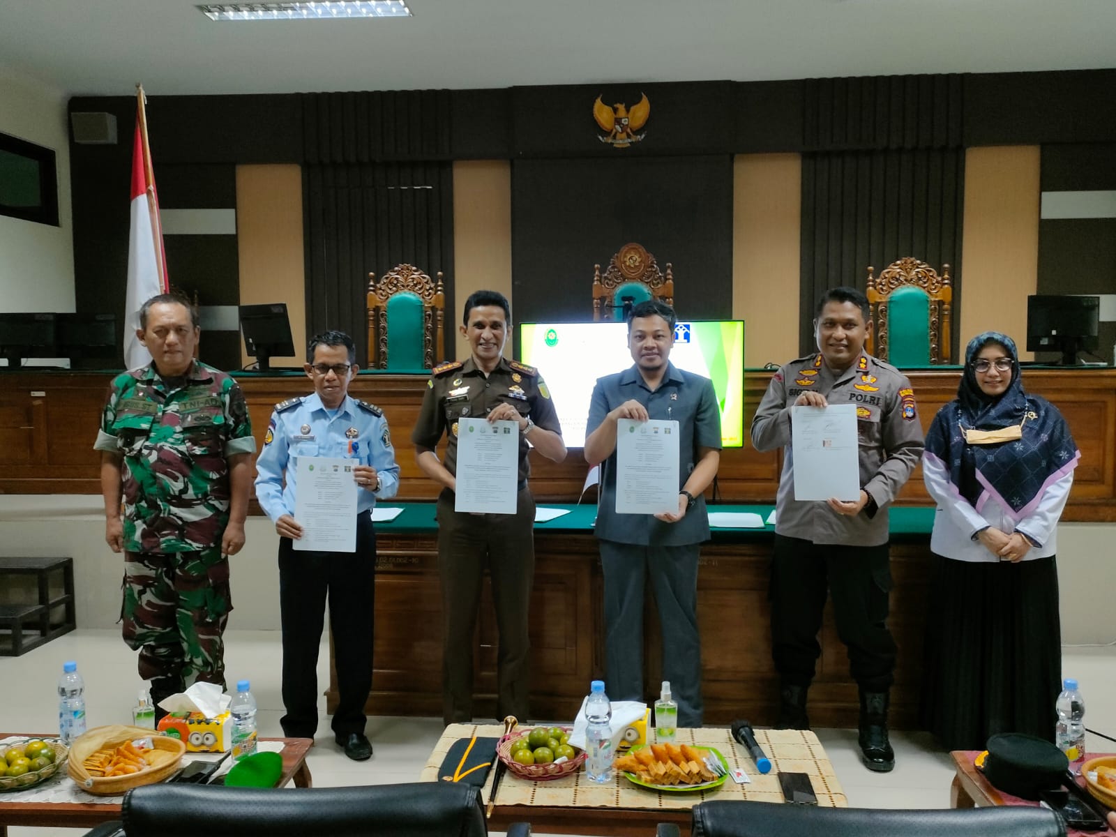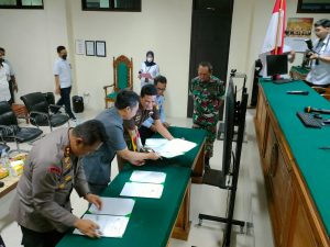 BARABAI-Kepala Staf Kodim1002/HST Mayor Arm Agus Sutisna mewakili Dandim 1002/HST mengadiri Mou kerjasama sama antara Pengadilan Negeri Barabai Kelas II Dengan Kejaksaan Negeri HST ,Polres HST,Rutan Kelas IIB Barabai Tentang Inplementasi Sistim Elektronik Berkas Pidana Terpadu (E-Berpadu) dalam rangka Mewujudkan adminitrasi pelayanan perkara pidana berbasis teknologi informasi bertempat di ruang sidang uatama Pengadilan Negeri Barabai Kelas II jalan Murakata Kecamatan Barabai Kabupaten HST. Senin (19/12).