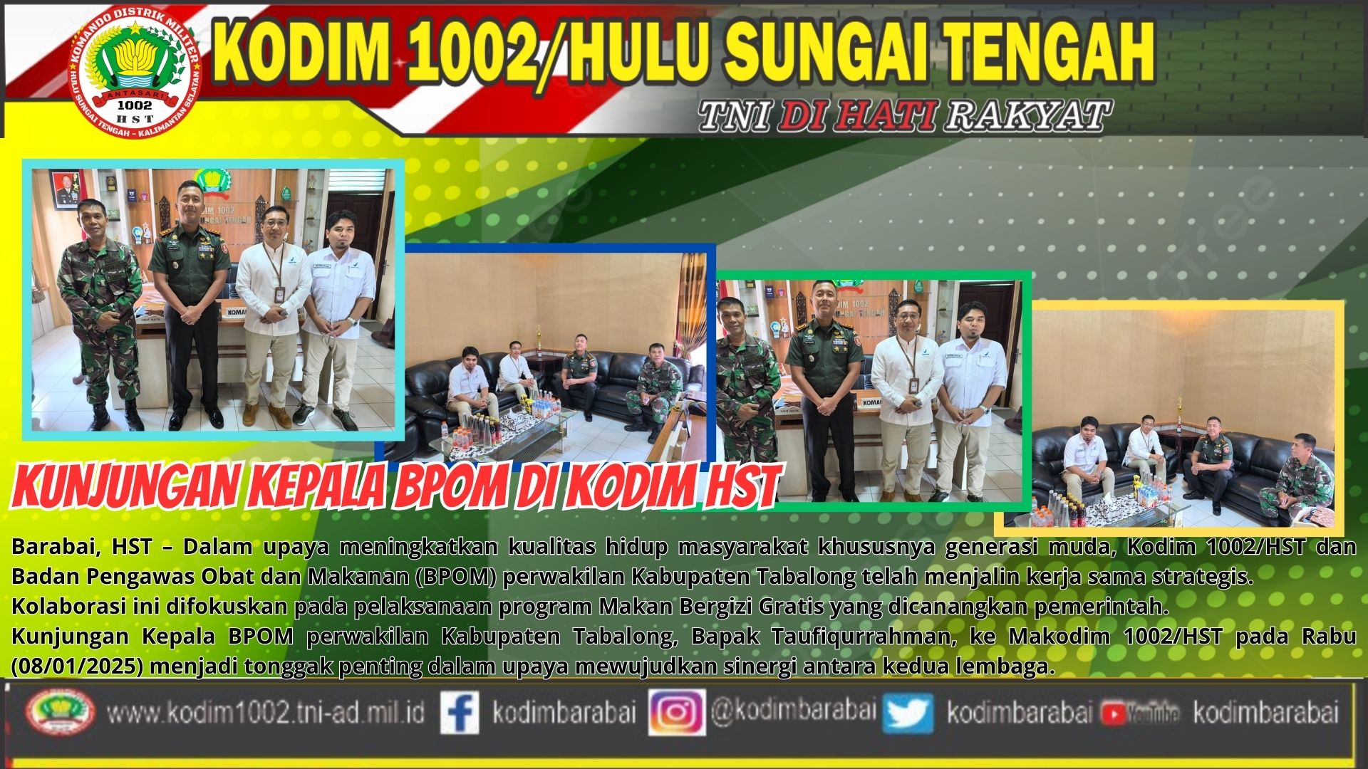 Kunjungan Kepala BPOM perwakilan Kabupaten Tabalong, Bapak Taufiqurrahman, ke Makodim 1002/HST pada Rabu (08/01/2025) menjadi tonggak penting dalam upaya mewujudkan sinergi antara kedua lembaga.