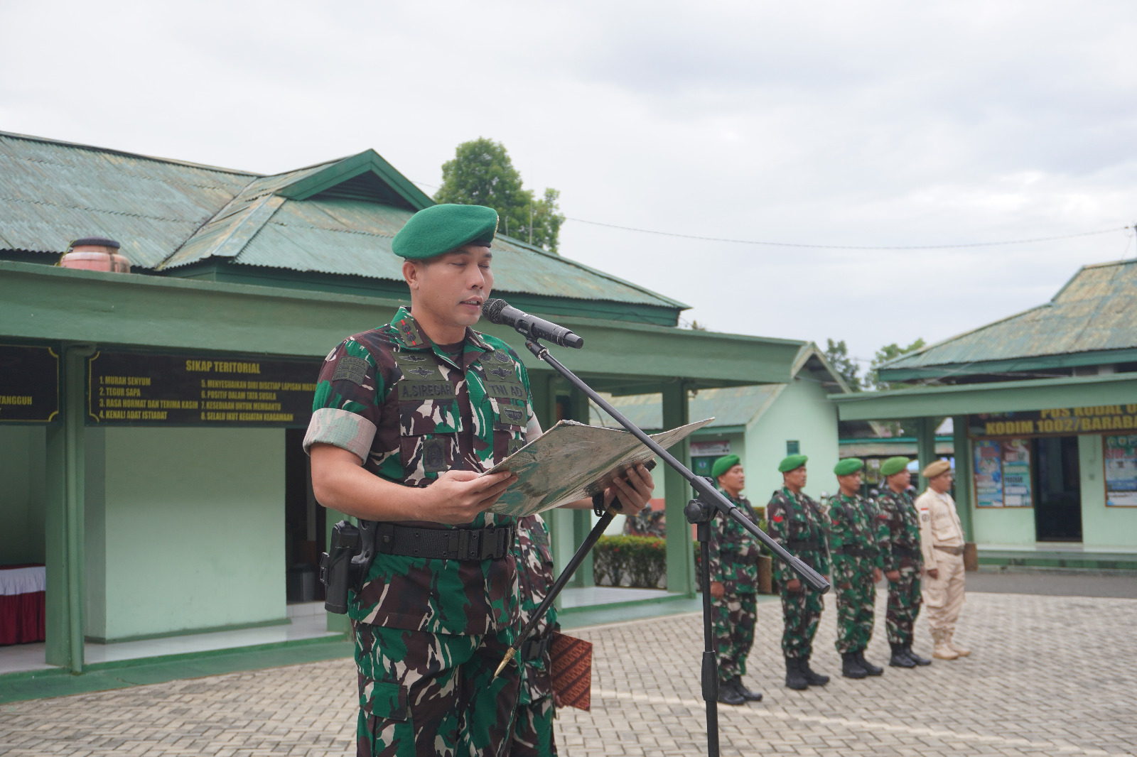 Bertindak sebagai inspektur upacara, Dandim 1002/HST Letkol Inf Ardiansyah Okta Putra Siregar, S.I.P., membacakan amanat Pangdam XXII/Tambun Bungai Mayjen TNI Zainul Arifin, S.A.P., M.Sc.