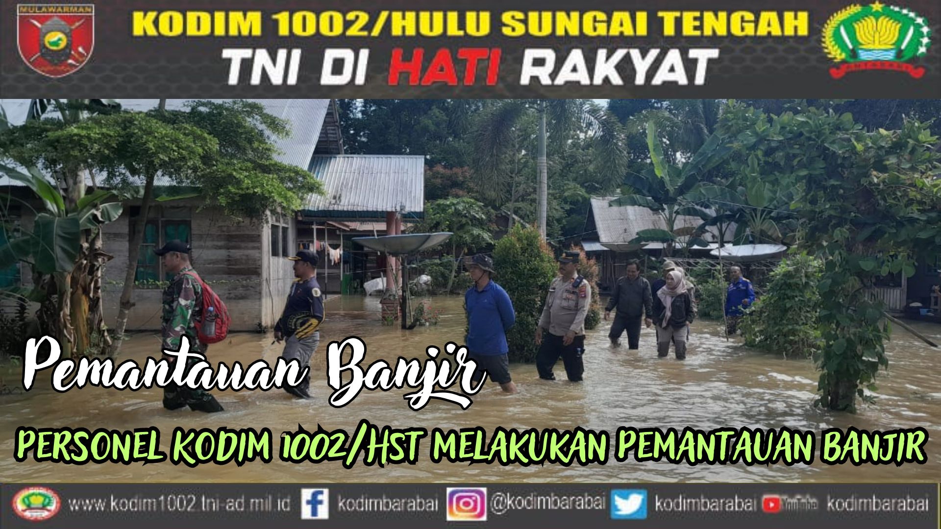 Sementara itu Danramil 1002-06/Barabai Kapten Inf Rudi Hartono bersama anggota melakukan pemantau banjir di wilayah terutama di bantaran Sungai Barabai,