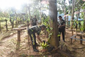 BARABAI-Dalam rangka pembinaan lingkungan hidup, Kodim 1002/HST menggelar karya bakti pembersihan taman wisata Batu Benawa di desa Pagat Kecamatan Batu Benawa Kabupaten Hulu Sungai Tengah (HST) Kalimantan Selatan.Jum’at (02/12).