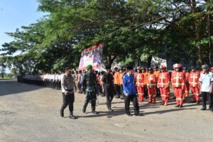 BARABAI-Anggota Kodim 1002/HST mengikuti Apel Gelar Pasukan Operasi Kepolisian Terpusat Ketupat Intan 2023 Polres Hulu Sungai Tengah dalam rangka kesiapan pengamanan Idul Fitri 1444 H di Kabupaten Huiu Sungai Tengah di stadion Murakata Jl.Mandingin Barabai. Senin (17/04).