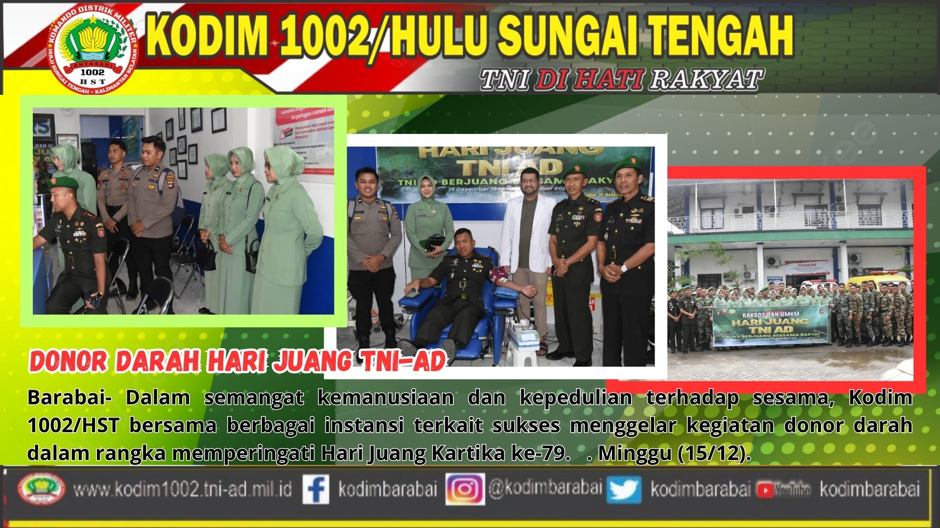 Barabai- Dalam semangat kemanusiaan dan kepedulian terhadap sesama, Kodim 1002/HST bersama berbagai instansi terkait sukses menggelar kegiatan donor darah dalam rangka memperingati Hari Juang Kartika ke-79.
