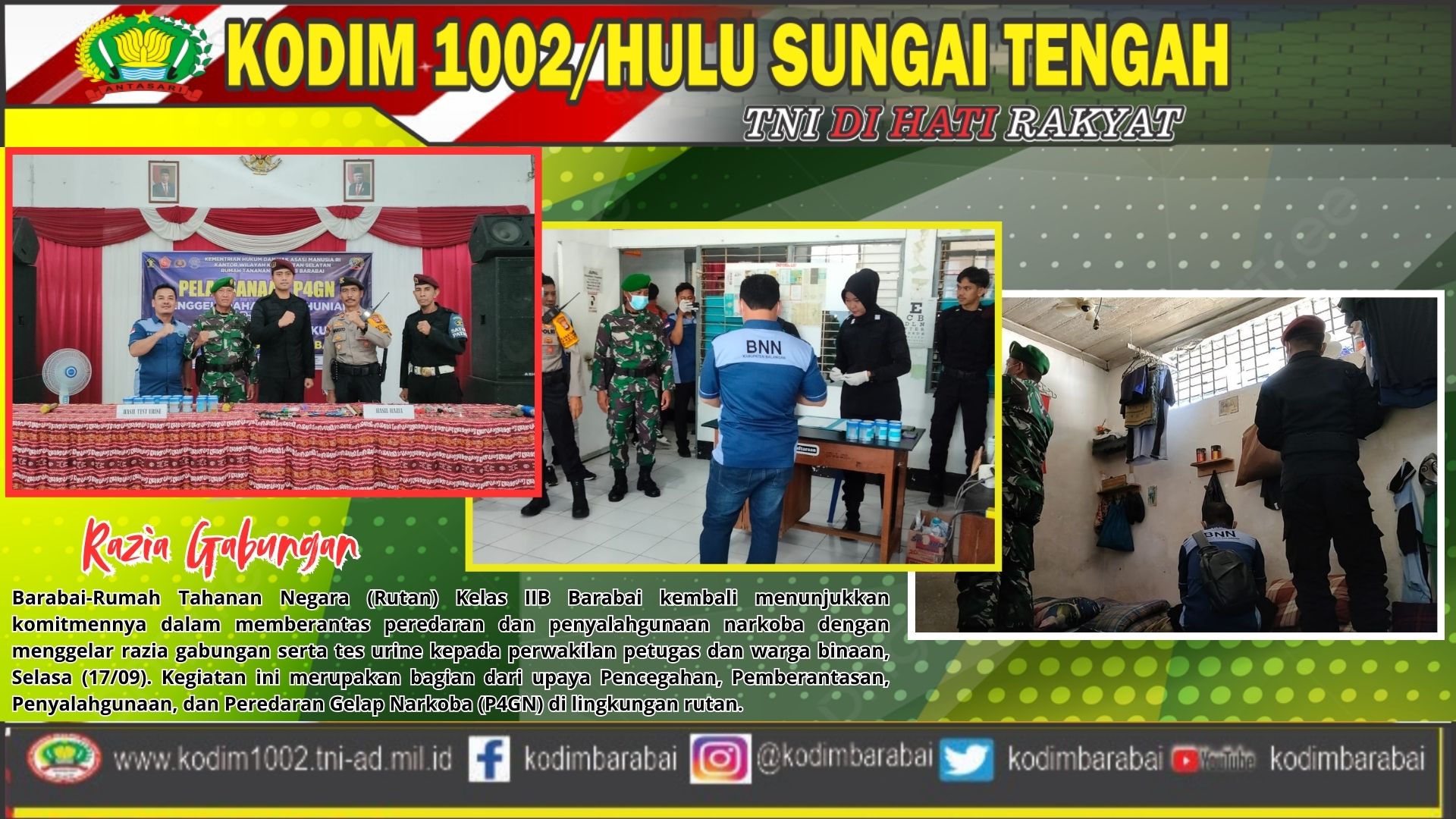 Rutan Kelas IIB Barabai berkomitmen untuk terus bersinergi dengan berbagai pihak dalam rangka mewujudkan lingkungan yang bersih dan aman dari peredaran narkoba, serta mendukung penuh program P4GN di tingkat nasional.