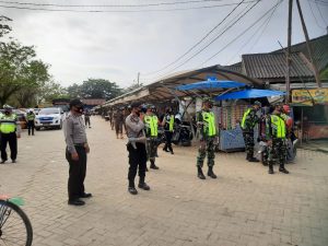 BARABAI-Terus tekan penyebaran covid-19 dengan penerapan pemberlakuan pembatasan kegiatan masyarakat (PPKM), TNI-Polri dan Pemerintah Daerah Kabupaten Hulu Sungai Tengah tegakkan protokol kesehatan di Pasar Keramat Barabai. Jum’at, (12/02).