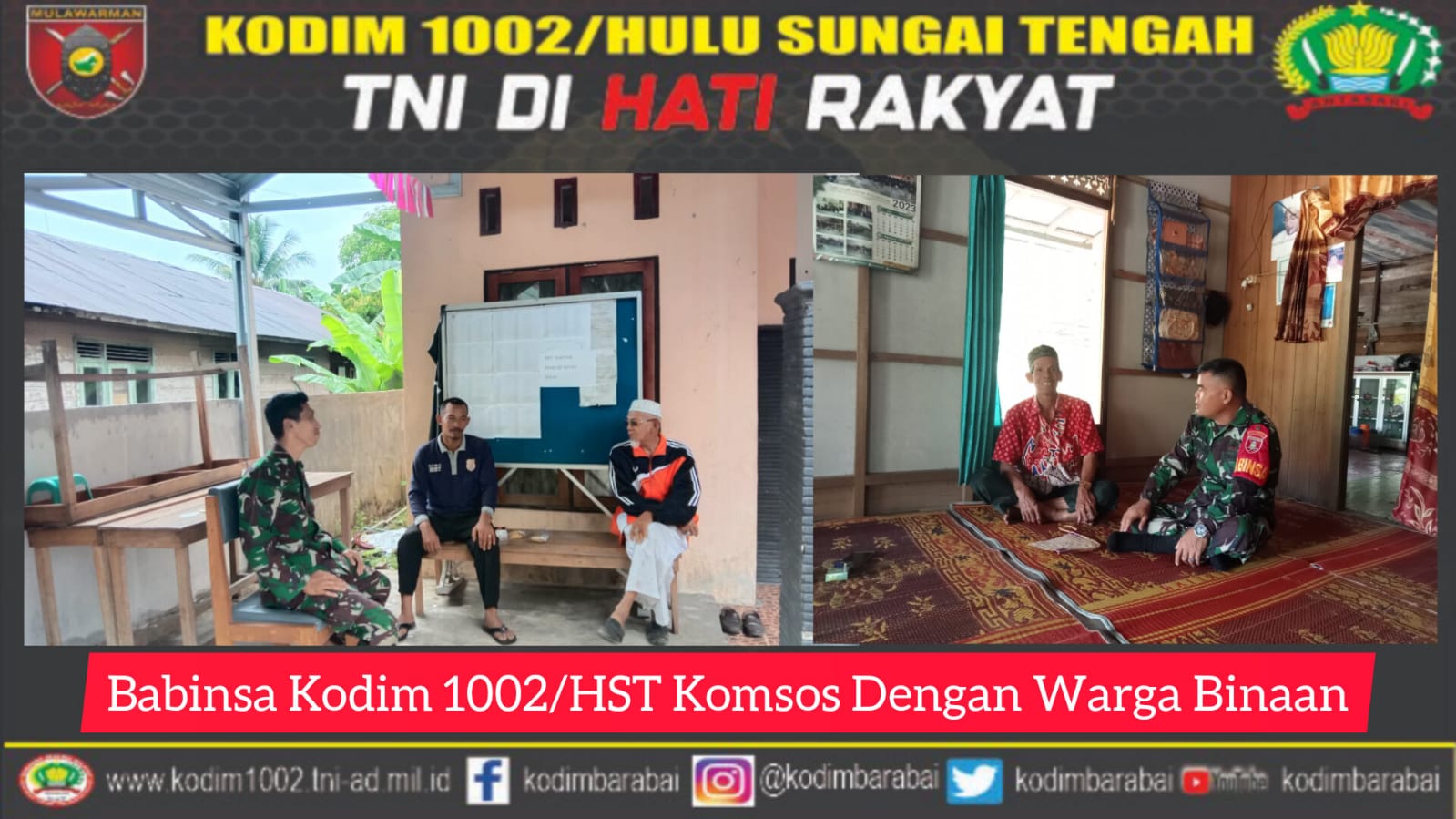 BARABAI-Komunikasi sosial (komsos) adalah salah satu media bagi babinsa untuk mengenal warga binaannya lebih dekat lagi dan sebagai sarana silaturahmi agar lebih dekat dan akrab.