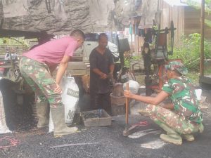 “Biasanya saat kami pulang dari lokasi TMMD, pandai besi sudah tidak beraktivitas, namun sore ini masih beraktivitas, jadi kami datangi saja,”terang Albertus