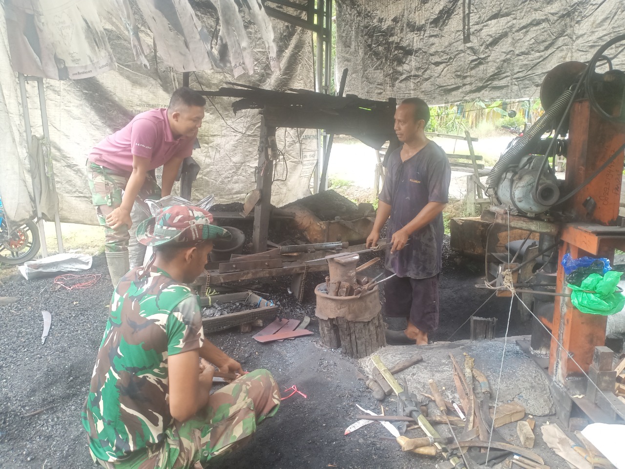 Namun untuk kali ini, anggota Satgas TMMD Kodim HST melaksanakan Komsos dengan menyasar pengerajin pandai besi milik Ansari (45) warga Desa Rantau Keminting, Kecamatan Labuan Amas Utara.