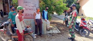 Melalui para Babinsa yang setiap hari memantau dan membina desa binaan, meraka melaksanakan sosialisasi dan himbauan kepada warga agar mematuhi protokol kesehatan (memakai masker, cuci tangan dan jaga jarak) dalam setiap berkomunikasi sosial dengan warga.”terang Plh.Danramil 1002-02/Ilung Pelda Riyanto.