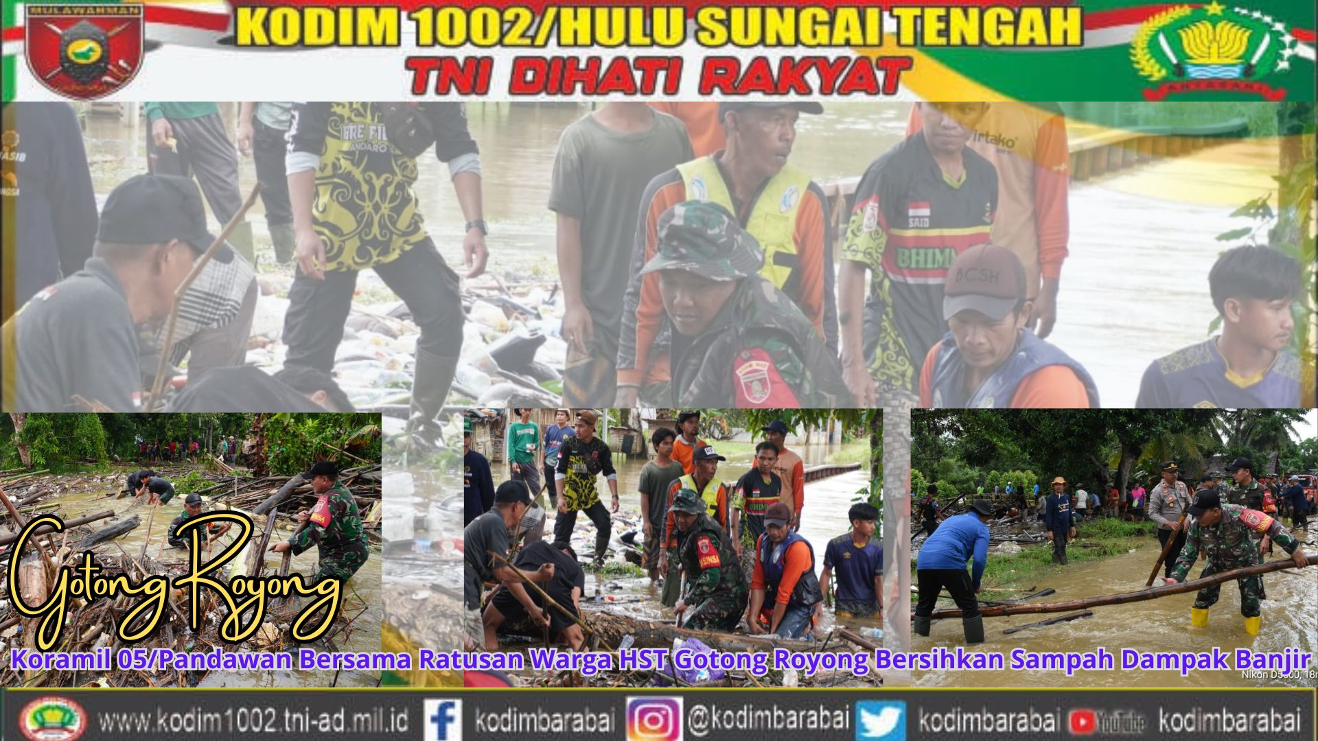 Koramil 05/Pandawan Bersama Ratusan Warga HST Gotong Royong Bersihkan Sampah Dampak Banjir