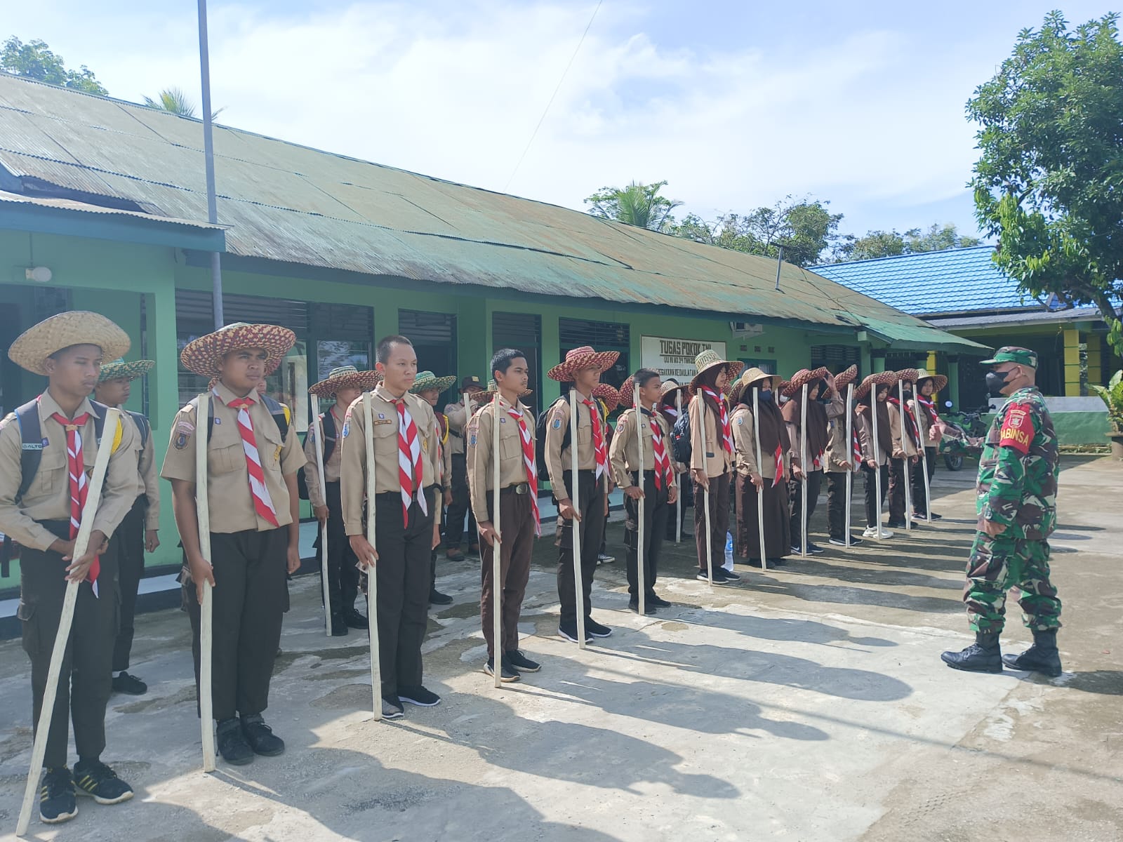 BARABAI-Koramil 1002-07/Batu Benawa melaksanakan pembinaan pramuka Saka Wira Kartika tingkat penegak di Makoramil Jalan Tanjungpura Desa Pagat Kecamatan Batu Benawa Kabupaten Hulu Sungai Tengah (HST) Kalimantan Selatan.Minggu (11/9).