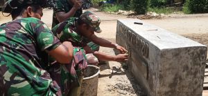Seperti yang dilakukan oleh anggota Satgas TMMD ke-107 Kodim 1002/Barabai membuat relief tulisan Satgas di atas gorong-gorong titik nol,Sabtu (11/4).