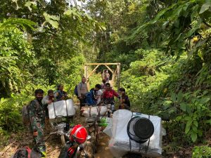 Lebih lanjut Dandim menuturkan bahwa perlu tenaga dan metal yang kuat untuk menuju desa Aing Bantai dan Desa Juhu, karena perjalanan menuju desa tersebut harus ditempuh dengan jalan kaki selama 2 s.d 3 hari perjalan, melewati perbukitan yang terjal dan menyebrangi sungai dengan arus deras.