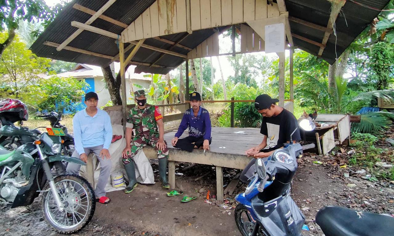 BARABAI-Memanfaatkan hari libur, Babinsa Kodim 1002/HST melaksanakan Komsos (Komunikasi Sosial) dengan warga binaan.