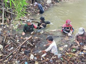 Bahu membahu anggota Koramil yang dipimpin langsung oleh Danramil 04/Las Kapten Inf Moh.Alip Suroso berbaur dengan masyarakat desa Tabu Darat Hulu, desa Bangkal dan desa Durian Gantang serta kelurahan Pantai Hambawang Barat sekitar 200 orang mengangkat sampah potongan bambu dan kayu serta memotong kayu yang tumbang melintang di atas sungai tabu darat hulu