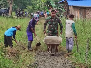 BARABAI-Guna memantapkan kemanunggalan TNI-Rakyat, Koramil 1002-06/Barabai melaksanakan gotong royong bersama warga binaan di desa Ayuang Kecamatan Barabai Kabupaten Hulu Sungai Tengah (HST) Kaliman Selatan.Selasa (19/07).