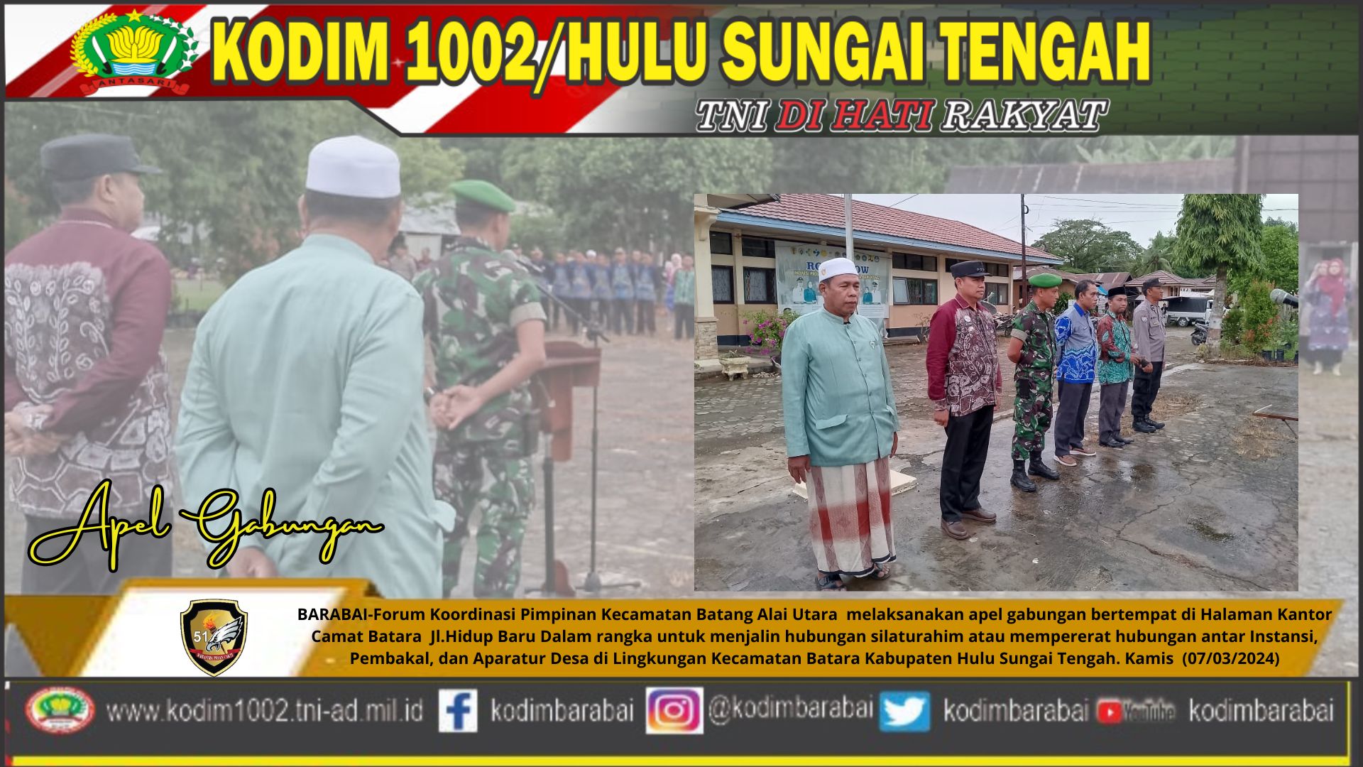 Apel gabungan dipimpin oleh Danramil 1002-02/Batang Alai Utara Kapten Czi Obet Subagiyo, Camat Batara H.Budhi Haryanto, Kapolsek Batara Ipda Wahyudi