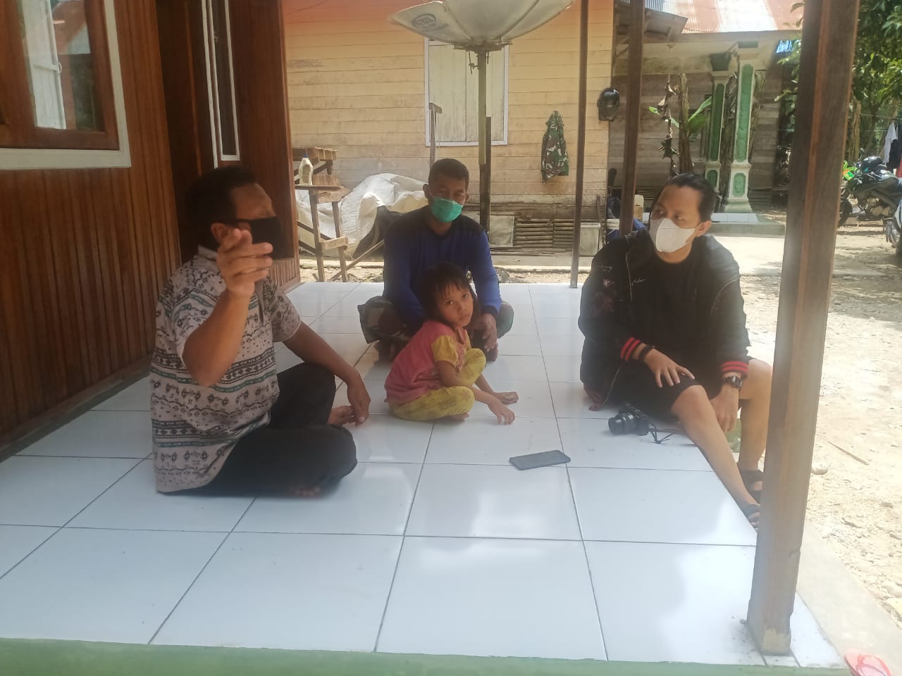 HULU SUNGAI TENGAH. Menikmati hasil pekerjaan dapat dilakukan berbagai cara, salah satunya anggota satgas TMMD Ke-112 Kodim 1002/Hulu Sungai Tengah (HST) dengan menikmati hasil renovasi Rumah Tidak Layak Huni (RTLH) milik Rusdi (43).
