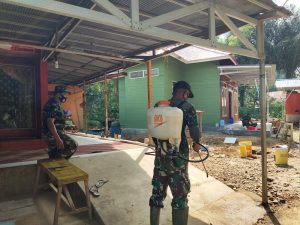 Dan SSK TMMD Ke-112 Kodim 1002/HST Kapten Inf Lilis Sutanto mengatakan penyemprotan disinfekan ini dilakukan guna mencegah penyebaran virus covid-19, dari rumah ke rumah yang ada di lokasi TMMD.