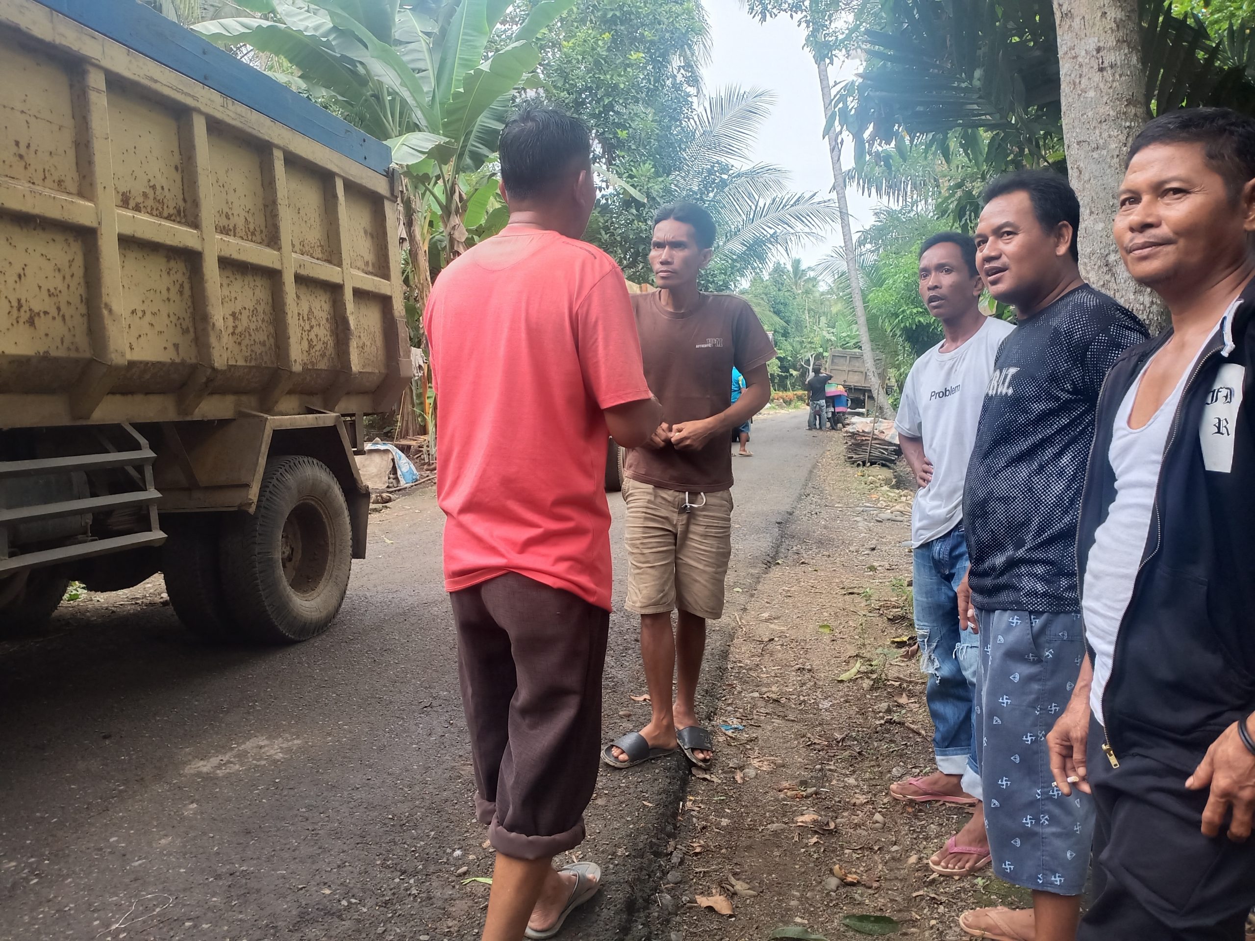 BARABAI-Meskipun antri untuk masuk ke lokasi Pra TMMD Ke-112 tahun 2021 Wahyudi (Sopir) dump truck mengaku senang bisa berpartisipasi dalam kegiatan TMMD.