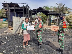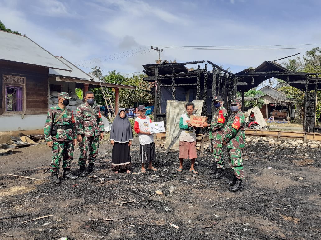 Dalam rangka meringankan beban warga korban musibah kebakaran, Koramil 1002-04/Pantai Hambawang dipimpin langsung oleh Plh.Danramil Peltu Henri Murpianto bersama anggota memberikan bantuan sembako kepada bapak Haris, Jum’at (15/5).