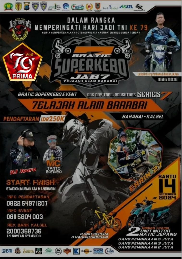 Barabai – Kamis (12/09/2024).Dalam rangka memperingati Hari Ulang Tahun (HUT) TNI ke-79, Kabupaten Hulu Sungai Tengah (HST) akan menjadi tuan rumah sebuah acara spektakuler, One Day Adventure Trail Jelajah Alam Barabai Part 7.