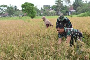 Dijelaskan oleh Plh.Pasiter Kodim 1002/HST Kapten Inf Moh.Alip Suroso demplot tanaman padi saat ini mamasuki masa panen setelah usia tanaman 110 hari,”terangnya.