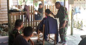 BARABAI – Satgas TNI Manunggal Membangun Desa (TMMD) ke-107 tahun 2020 Kodim 1002/Barabai melakukan pangkas rambut gratisĀ desa Sungai Jaranih kecamatan Labuan Amas Selatan dan desa Haruyan Seberang Kecamaran Haruyan Kabupaten Hulu Sungai Tengah, Rabu (26/3).