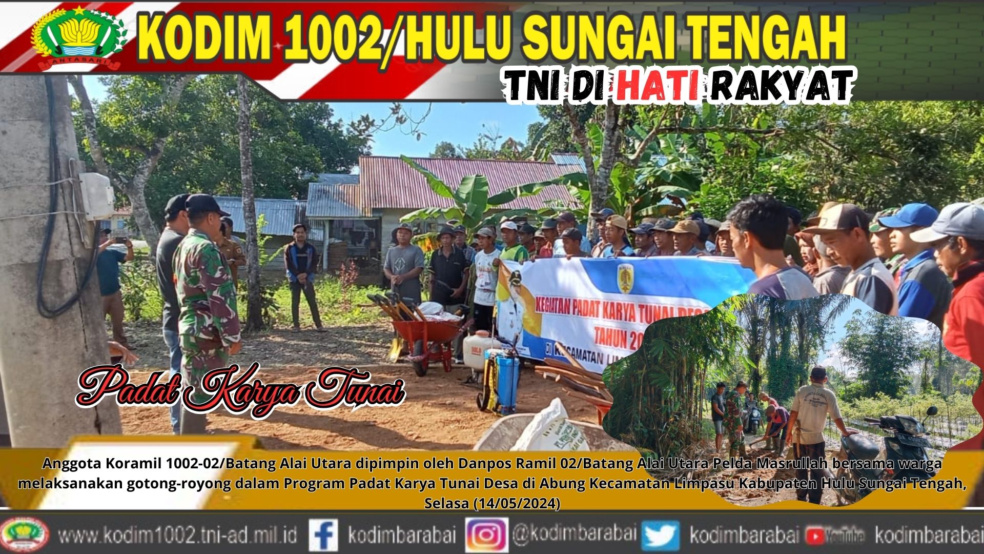 BARABAI-Kemanunggalan TNI-Rakyat semakin terlihat dalam program padat karya tunai desa. Hal ini dilakukan anggota Koramil 1002-02/Batang Alai Utara Kodim 1002/Hulu Sungai Tengah.