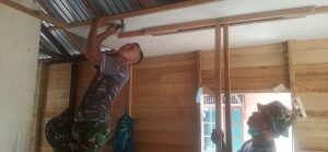 HULU SUNGAI TENGAH- Satuan Tugas (Satgas) TNI Manunggal Membangun Desa (TMMD) ke-112 Kodim 1002/Hulu Sungai Tengah (HST) kini mulai tahapan baru untuk dapat penyelesaian Renovasi Rumah Tidak Layak Huni (RTLH) milik Rusdi, salah satu warga Desa Rantau Keminting, Kecamatan Labuan Amas Utara.